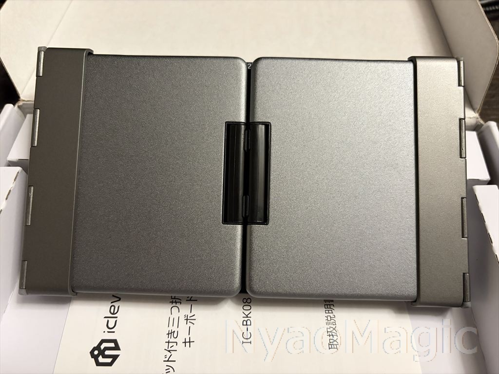 IC-BK08は、タッチパッド付き・三つ折りタイプのBluetoothキーボードである。